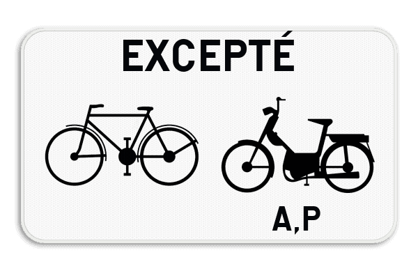 M12 : Ce panneau inférieur indique que le panneau de signalisation susmentionné ne s'applique pas aux cyclistes, aux cyclomotoristes de classe A.