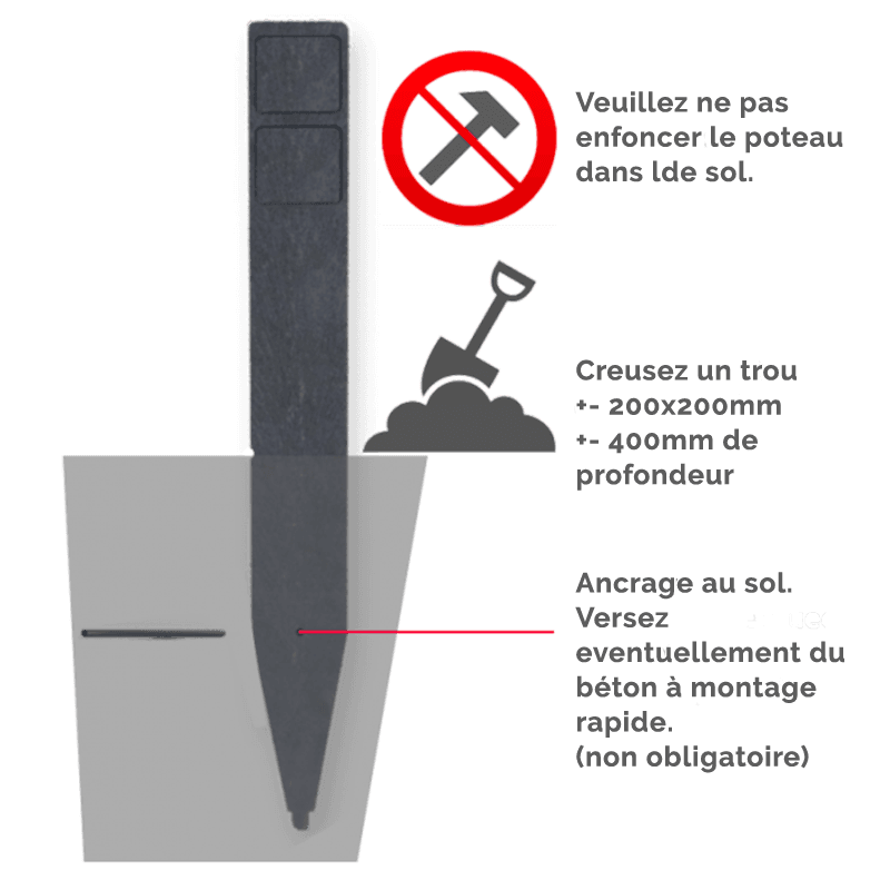 Poteau autoportant en plastique recyclé. >> Fourni entièrement assemblé.