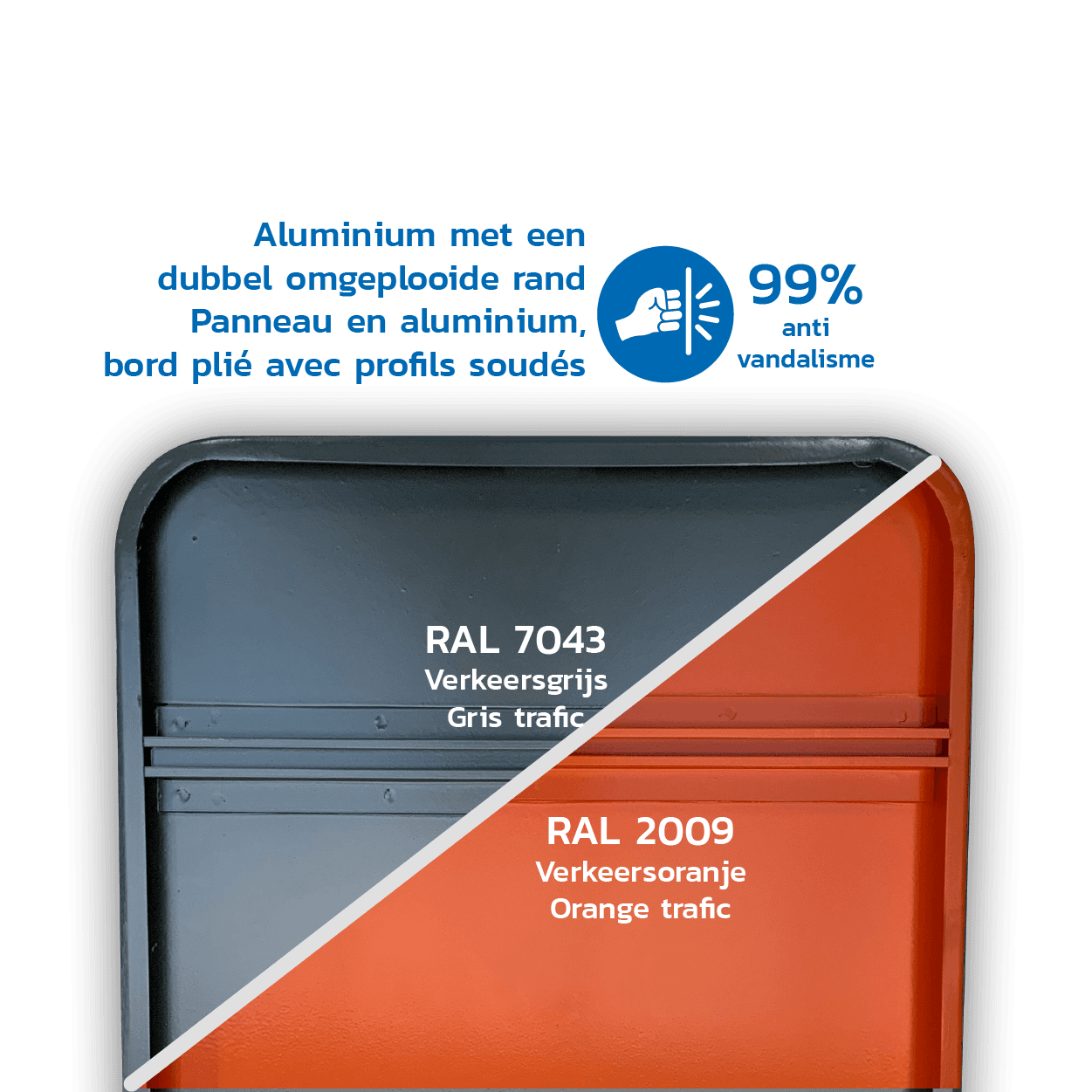 Panneau de signalisation officiel avec bord doublement plié.